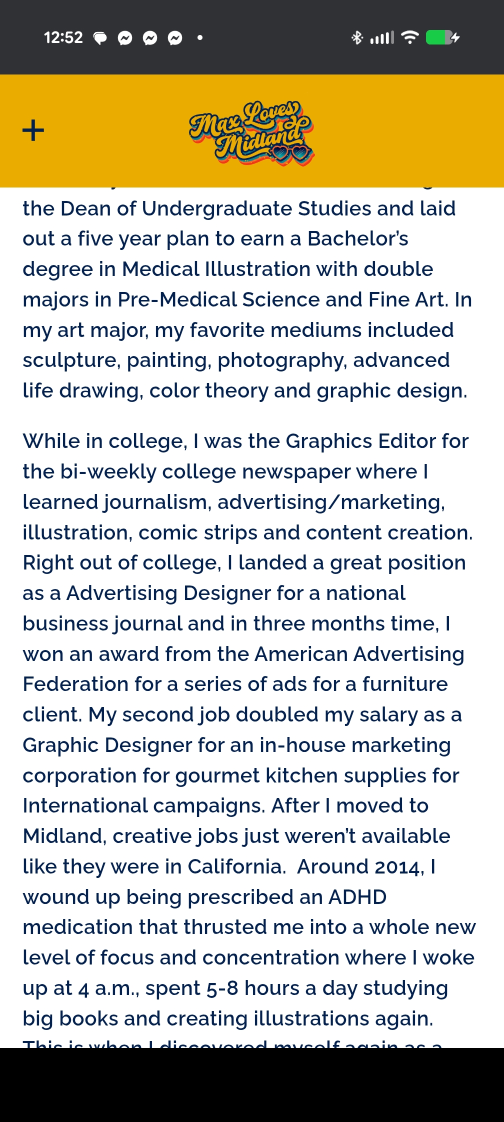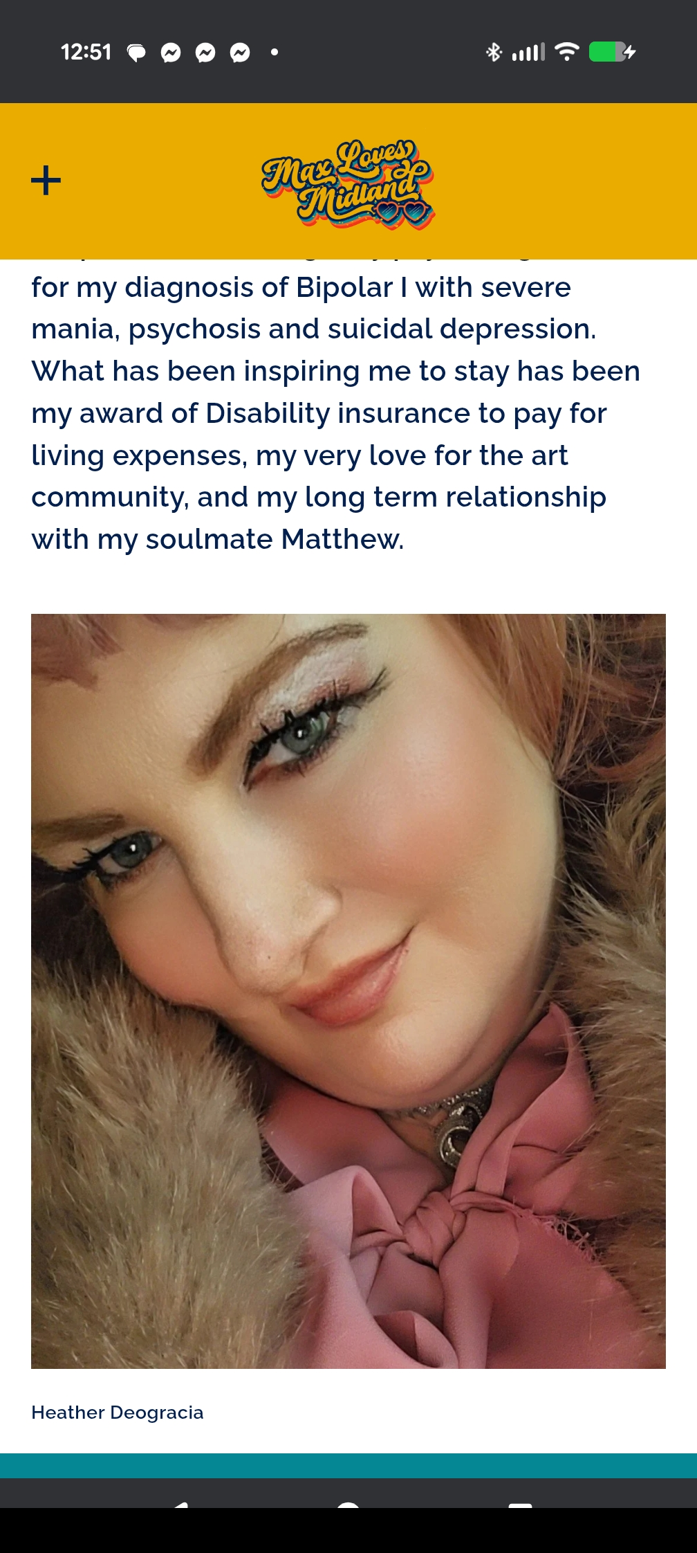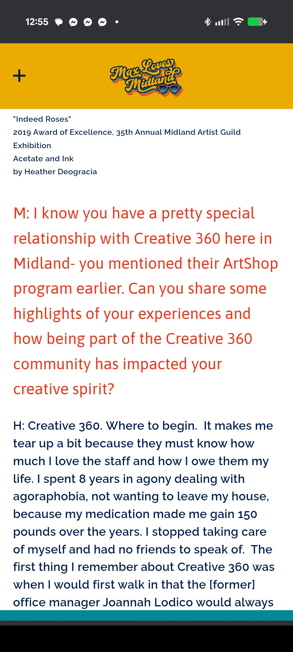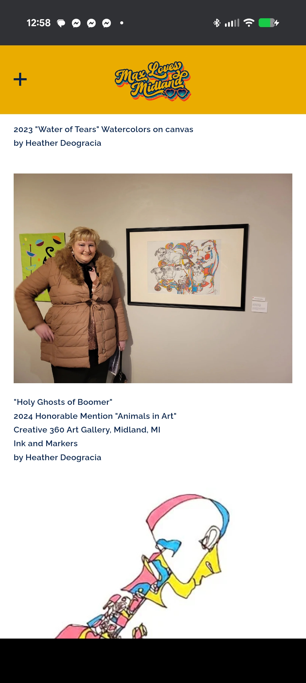 On the first day of my job, I walk into a production studio to hand in paperwork. A young gentleman stands up to shake my hand when I walk into the room. "Wow! You are tall." he states. I point to my heels of my shoes. "Wow! You are short." Laughter lights up the room. Matt Damon San Francisco Clear Channel Radio With an electric soul of an artist, Heather Deogracia, has an interesting personality that uses her manic branches of her mind to express her sense of humor, expand the creative hourly illustration addiction and continually read big books about artistic principles, elements and glorious techniques to feed her intellectual capabilities. “With a splash of color and chemicals in my brain, I have to clean it out once a day or it must flash flood my other organs.” Heather Deogracia Proud to start staging a background of her latest achievements, Heather was on the front page Sunday Feature in the Midland Daily News on Oct. 19, 2016 and is an Award-Winning Fine Artist for the state-wide competition Legacy Trust Award Collection for the past three years in a row. She displayed in over 30 exhibits and fundraisers in the tri-city area over the past four years. She has earned a 2017 Leadership of Bay County Achievement Award from Studio 23 and a Midland County Art Letourneau Award for "Collaboration and Creativity in Community Support". A harshly educated woman, Deogracia spent five years to earn a double major Bachelor’s Degree of Science in Medical Illustration in Pre-Medicine and Fine Art at California State University in San Bernardino. At the same time period, she held down three jobs as an Intern for the District Attorney, Graphics Editor for the college weekly newspaper and created the Peer Health Education program. Her artistic talents covered in the fine studio art requirements included painting, color theory, graphic design, photography, figure drawing, advanced drawing, watercolor, sculpture, illustration and art portfolio assignments to keep work organized. In the sciences, she has a background in chemistry, organic chemistry, biochemistry, advanced human anatomy and psychology, biology, genetics, comparative animal psychology, marine biology and medical microbiology. Currently, she has been an art instructor for workshops for the past year for Creative 360, teaching private art lessons and writing a graphic novel soon to complete by the beginning of 2018 named Heather Hurts Inside: Illustrations of a Broken Human. The new true story is about a suicidal bipolar woman that is prescribed Ritalin at the age of 38 and she reverts back to her glory days of her life. The truth is that no one knows the past is killing her mind. View more posts